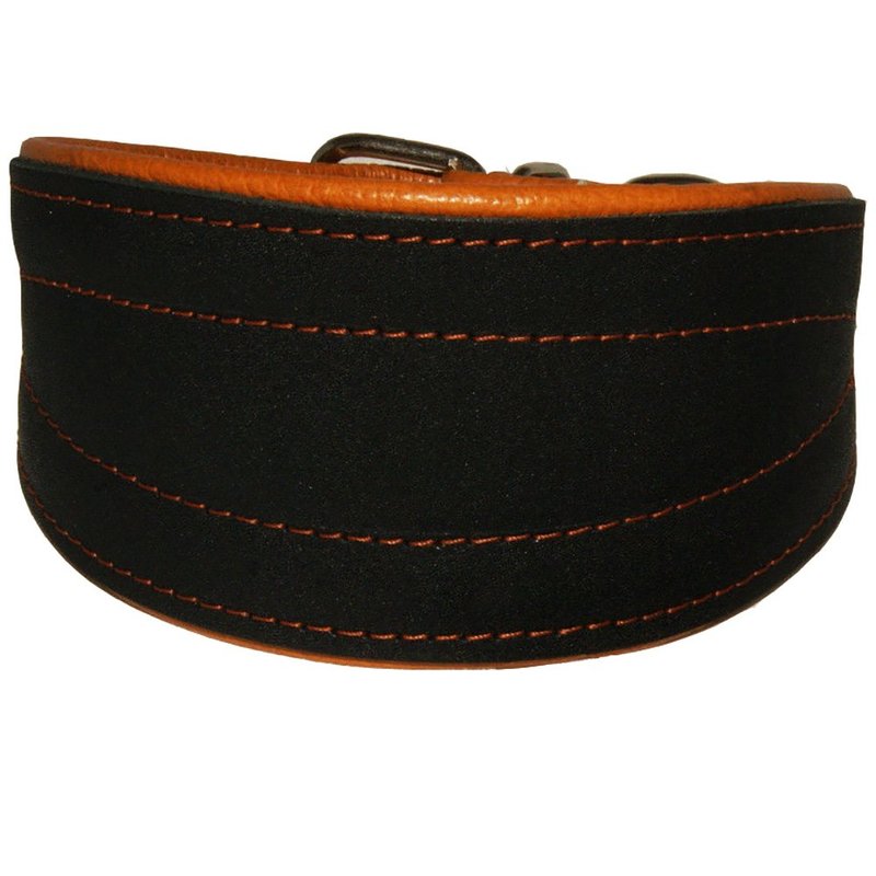 Real Leather Extra Wide Padded Tapered Dog Collar Glossy Black Greyhound Saluki Deerhound Lurcher Whippet Dachshund (11"-13" Neck; 2" Wide, Toffee)