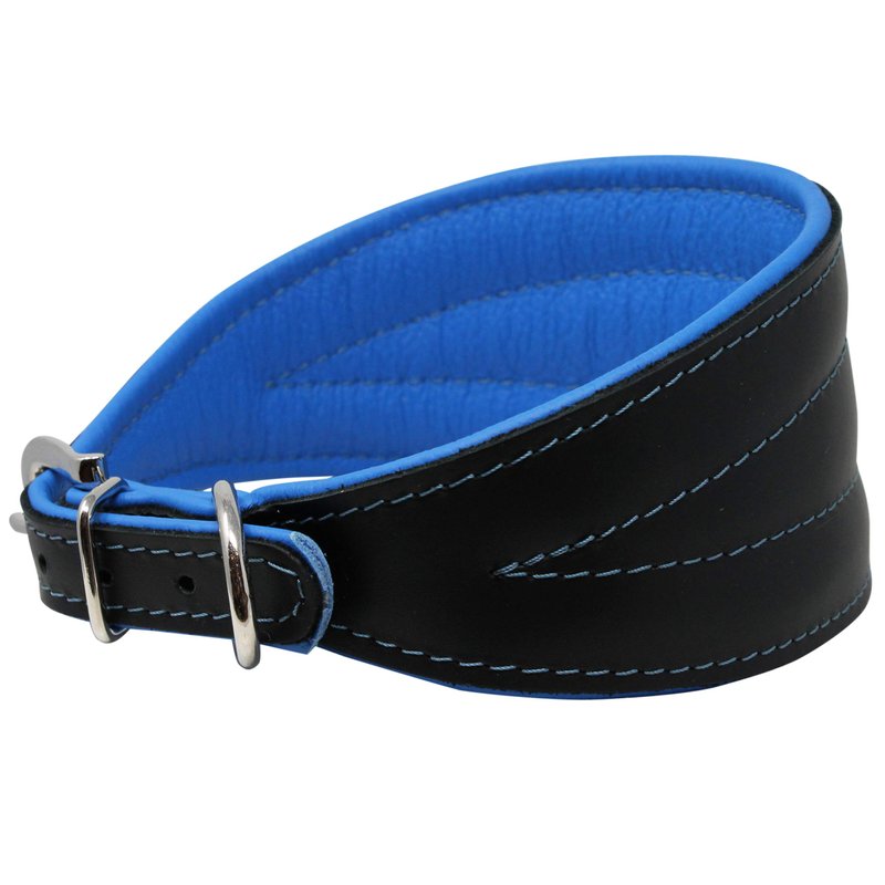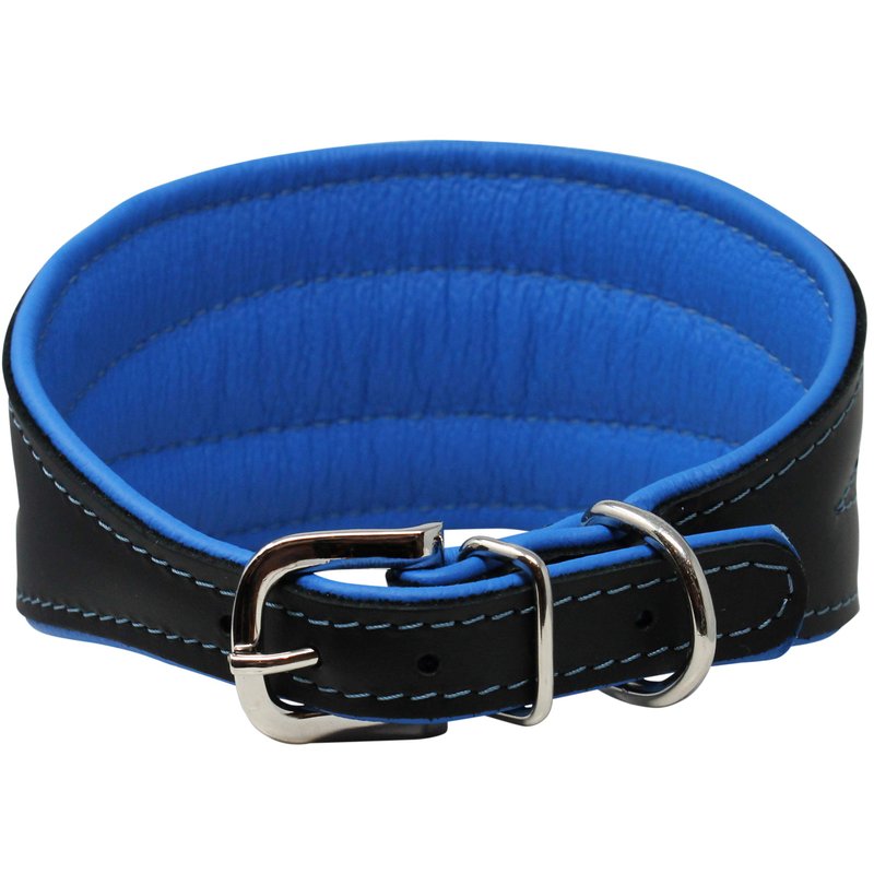 Real Leather Extra Wide Padded Tapered Dog Collar Glossy Black Greyhound Saluki Deerhound Lurcher Whippet Dachshund (13.25"-15.25" Neck; 2.5" Wide, Blue)