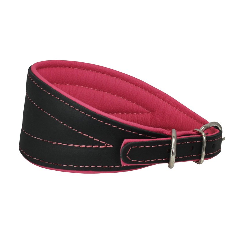 Real Leather Extra Wide Padded Tapered Dog Collar Glossy Black Greyhound Saluki Deerhound Lurcher Whippet Dachshund (16.25"-18.75" Neck; 3" Wide, Pink)