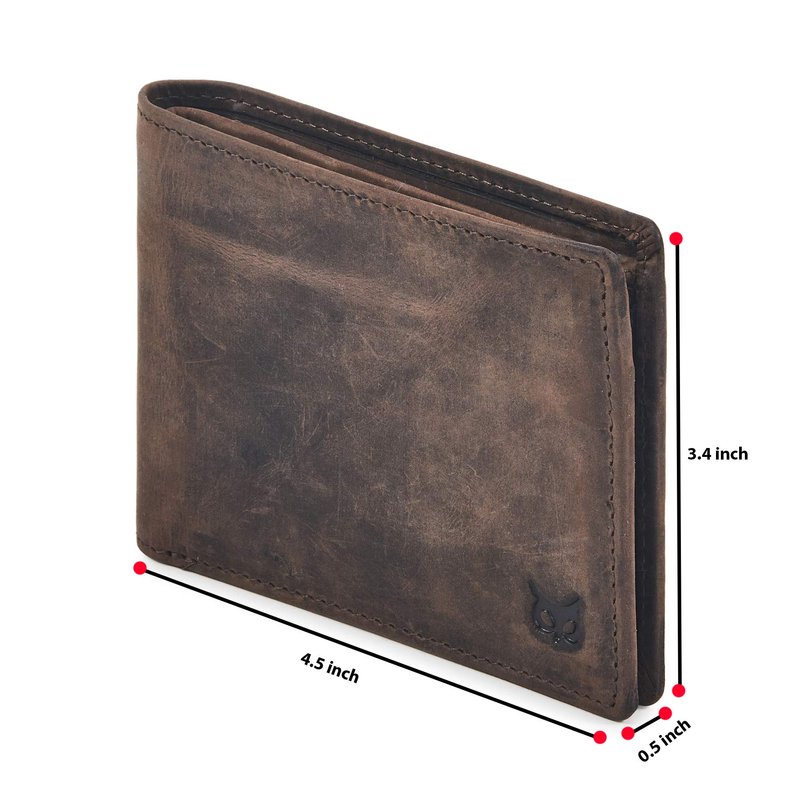 PERFECT TRAVEL COMPANION This Real Leather wallet from WISE OWL ACCESSORIES, is your perfect travel companion. Whether you need to go down the street to your regular grocery store, or to your favorite restaurant, this wallet has you covered. It has ample space to keep all your cards and currencies at one place. Being a classic bi-fold, these wallets are a go-to, all-round choice for every day or even for days when you are travelling to a foreign destination, since its never too bulky to carry these wallets in your pockets. Its constructed keeping in mind the need of the modern man, who likes to keep things simple and organised. NO WASTED SPACE When we were making this wallet, we wanted to be sure that there are no wasted space. After a lot of trials and research, we were able to make this wallet in dimensions of 4"x3.25"x0.75". These dimensions for a Bi-fold wallet are a new standard, as most of the wallets available are quite large, which makes it uncomfortable to keep them in your back or front pockets. However, this is not the case with this wallet. When you place this bi-fold in your pant pockets, you shall notice that it takes up very less space than the other bi-folds. On the other hand, this wallet is still spacious as it holds as many cards and currencies as the other bi-folds. So if you are looking for a spacious yet light wallet, then you can surely settle for this one.
