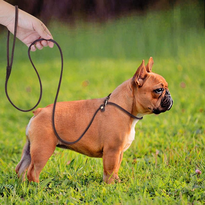 - ❤[ Adjustable to fit any neck size ] --The leathe slip collar dog leash for small dogs has 2 leather riveted sliders that adjusts the collar loop freely to fit any neck size and prevents slipping off. This P-leash serves as both a collar and leash by tightening and loosening when necessary
