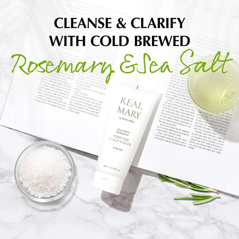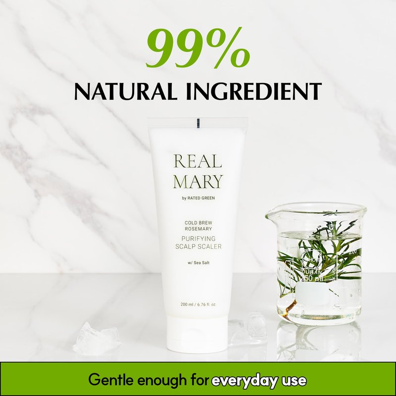 REAL MARY Cold Brew Rosemary Purifying Scalp Scaler w/ Sea Salt | Korean Hair Care Dry Scalp Treatment for Flaky, Itchy & Mild Troubled Scalp | Deep Conditioning Treatment Scalp Care (6.76 Fl. Oz)