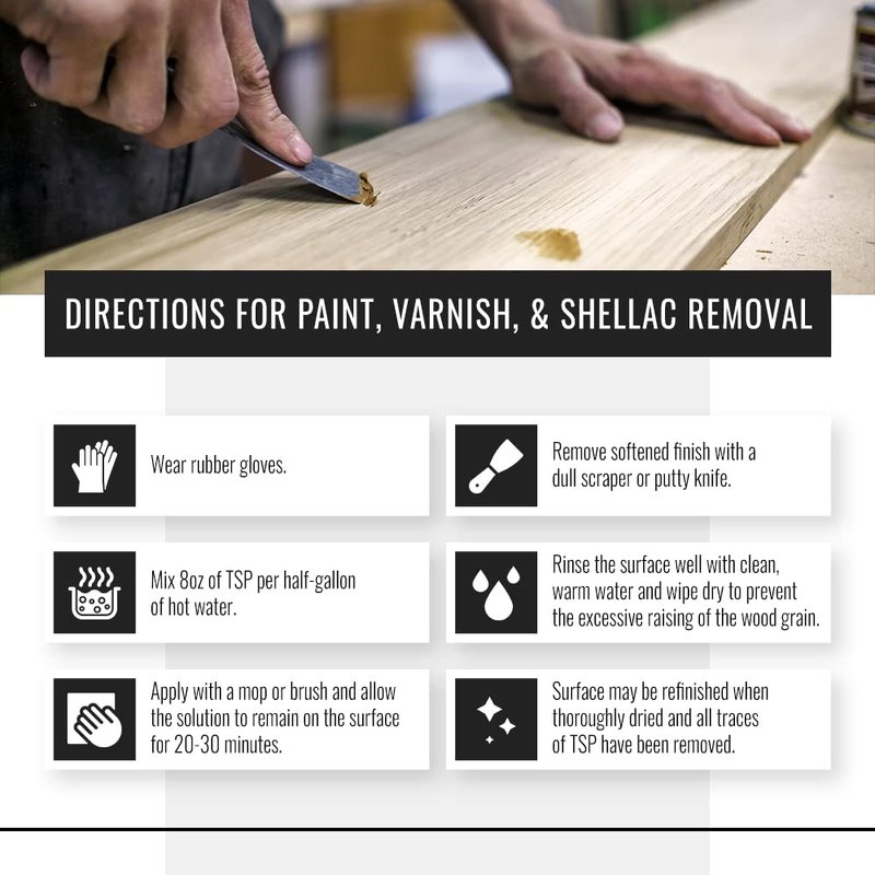 - WOOD FURNITURE CLEANER - Great coverage. Use Trisodium Phosphate as a wood floor cleaner, wood furniture cleaner and wood finish cleaner to prime surfaces for painting