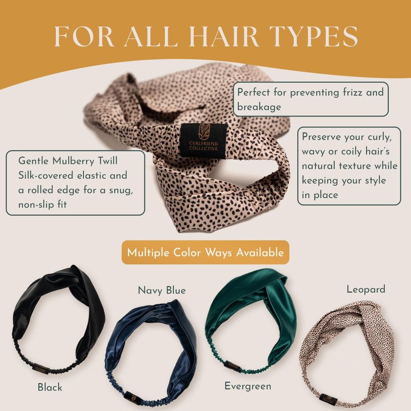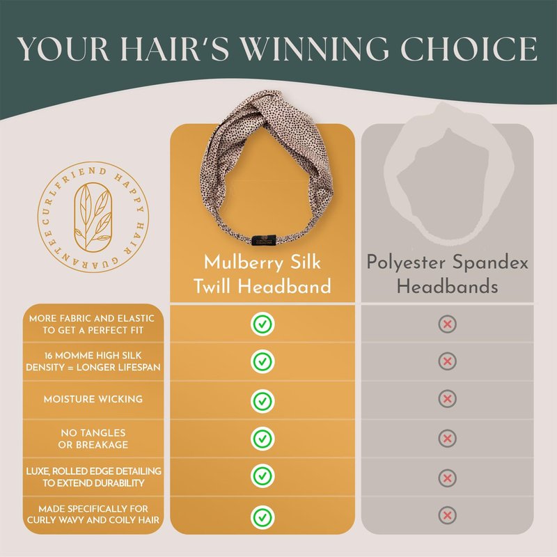 Experience the perfect blend of style and functionality with Curlfriend Collective's Mulberry Silk Headbands. Tailored for thick, curly hair, these headbands come in elegant prints and colors, offering a gentle, secure hold without damaging your curls. Ideal for sleeping or face washing, they fit all sizes and stand out for their safety and quality. Trust in the care from a female-founded brand that knows curly hair.
