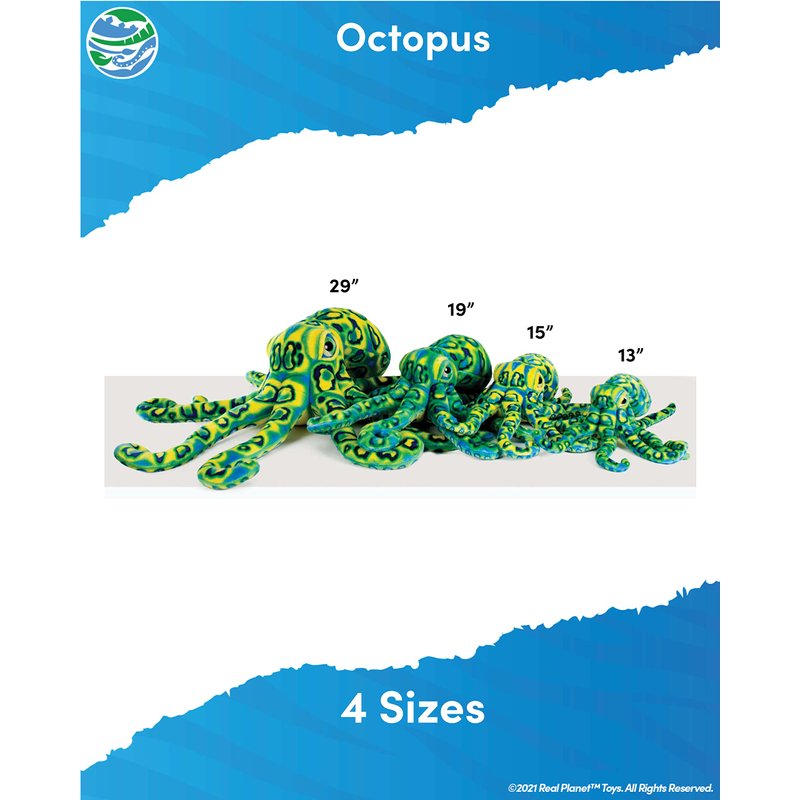 Real Planet Sea Life Plush - Realistic Stuffed Animal Gift for Kids All Ages, Ocean Marine Creature Plushie, Christmas Birthday Gifts (Blue Octopus, 29")