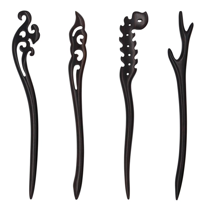 Real Sic Natural Sandalwood Hair Sticks for Women - Set of 4 - Retro Fashion Chopsticks for Long Hair (Alchemy Set)