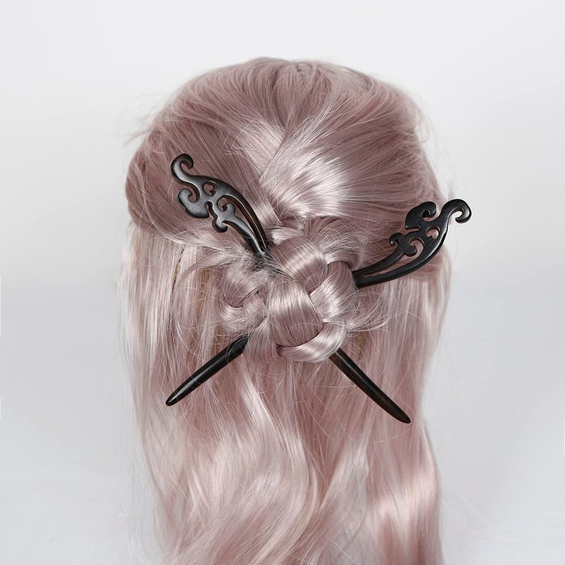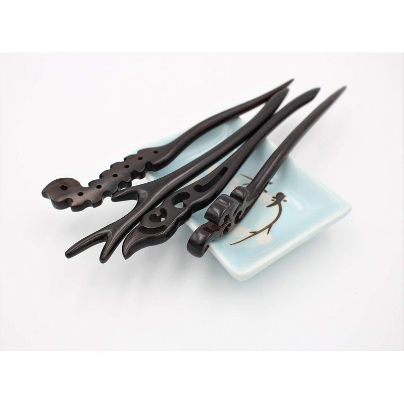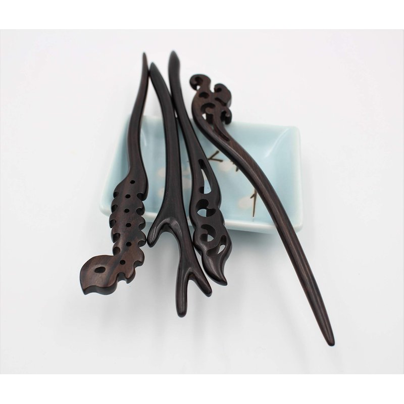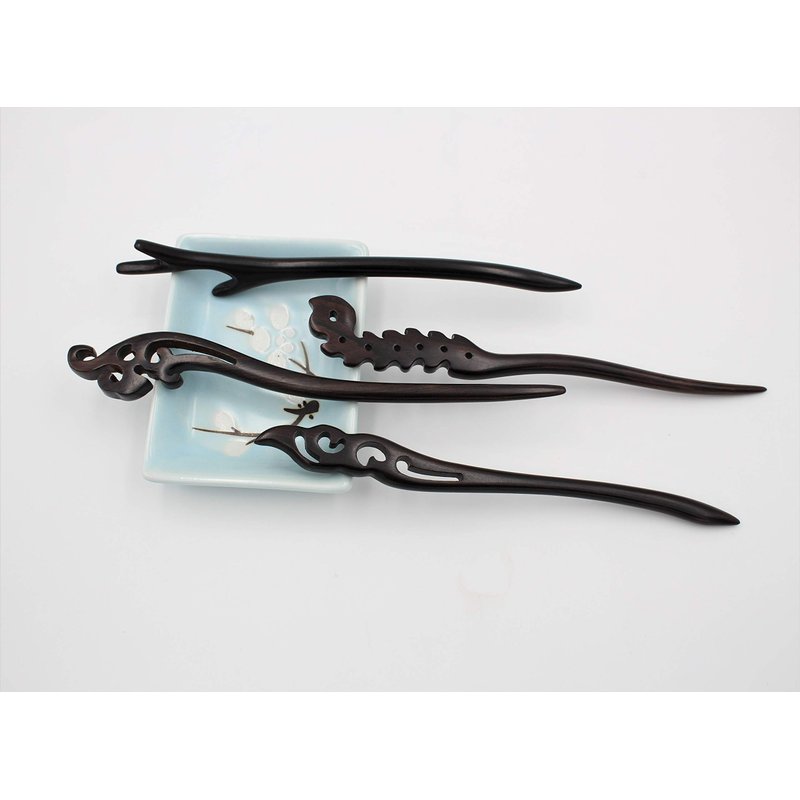 Inspired by traditional Asian hair fashion and the natural elements, our set of hair sticks are a simple and elegant way to hold hair in place. Simple to use with a bun gives extra flair to your hair with boho style. Quality, sustainable material will last a lifetime. Dark mahogany finish is classic and matches most hair types. * Sustainable Sandalwood * 7" Long * Set of 2 * Bohemian Style * Designs inspired by Natural Elements
