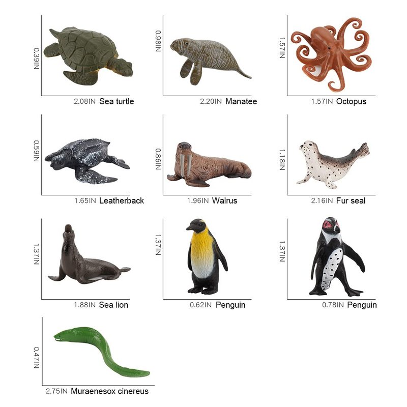 - Item include; Sea Turtle * 1, Manatee * 1, Octopus * 1, Leatherback * 1, Walrus * 1, Fur Seal * 1, Sea Lion * 1, Penguin * 2.