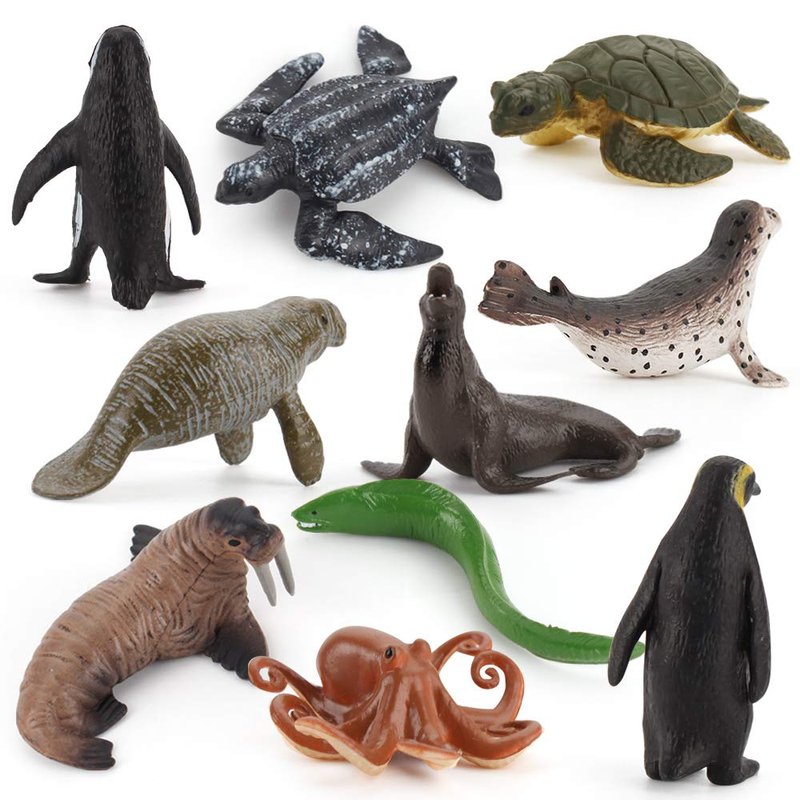 Realistic 10 PCS Mini Ocean Sea Marine Manatee Walrus Turtle Figure Desktop Decoration Party Supplies Cake Toppers Bath Toy for Kid Boy Girl 5 6 7 8 Year Old