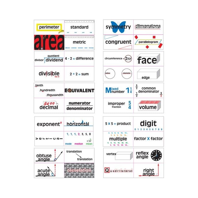 - HELP YOUR STUDENTS CONNECT VISUAL KNOWLEDGE TO VOCABULARY: These unique Math Vocabulary Word Wall Cards help students visually connect words to meanings with colorful, fun, and clever cues on each.