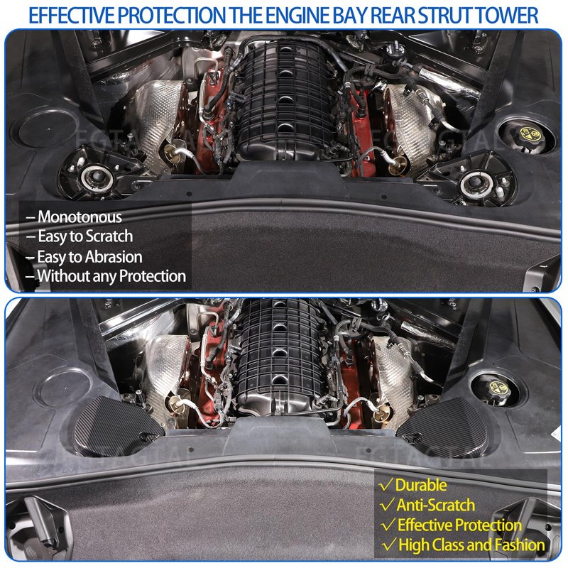 - 【Applicable Models】: The rear strut tower cover compatible with Chevrolet Corvette C8 Stingray 2020-2024, The size of the original car is customized.