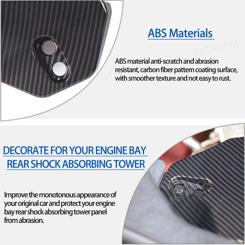 - 【Unique Style】: According to the original car design, the engine bay rear shock absorbing tower cover can brighten and improve the monotonous appearance of your original car, add an unique color. And protect the rear strut tower panel from scratches and abrasion.