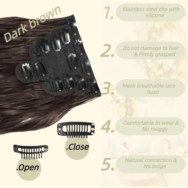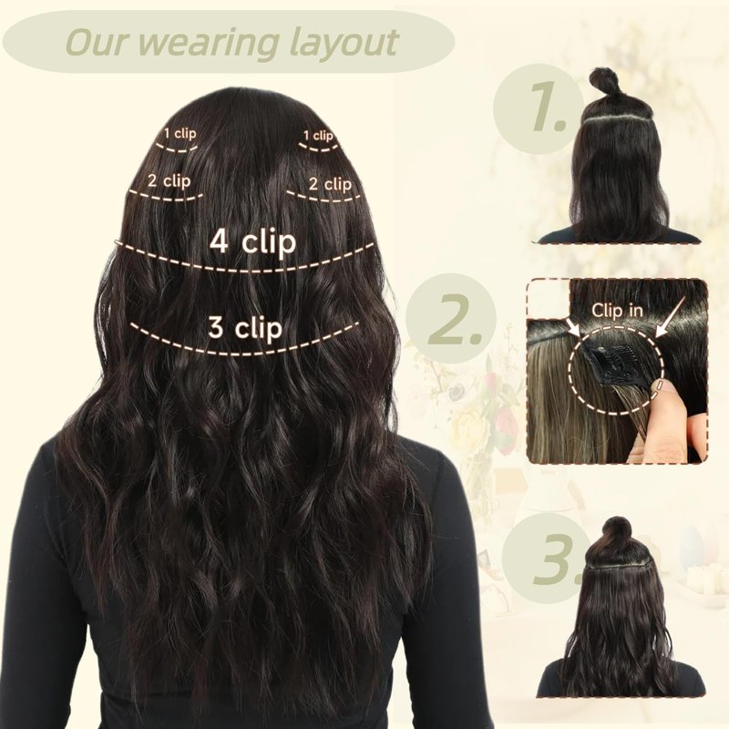 - 【Premium Clip in Hair Extensions】:Our clip ins hair extensions is made of high quality heat resistand synthetic fibers, it is soft, smoothly and no chemical smell, blend well with your own natural hair. Closely look and feeling with clip in hair extensions real human hair,you can restyle it by the curling iron, not get tangle easily.