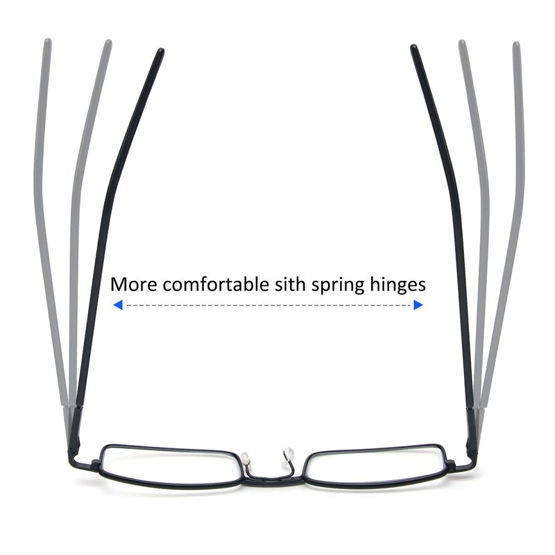 - HIGH QUALITY METAL FRAME WITH SPRING HINGE.Made of durable metal material,perfected with spring hinges for personal fit.
