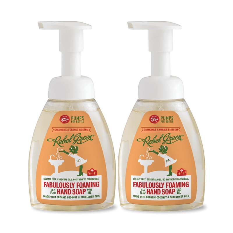 Rebel Green Foaming Hand Soap - Moisturizing Natural Bathroom & Kitchen Liquid Foaming Soap - Gentle Household Hand Wash with Chamomile & Orange Blossom Scent - (8oz, 2 pack)