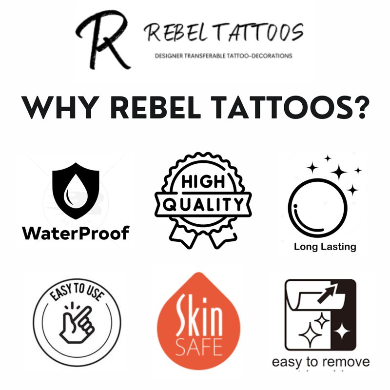 - Kindly Note: The stickers adhesive strength is sufficient, you also can use eyelash glue to enhance the stickin (Especially oily skin or sweating particularly much activity). Make sure to put on clean, dry skin (applied makeup afterward), so that the gems stones will stick reliably throughout the evening. Rebel Tatttos stickers has unique design and it is only option that exist on the market