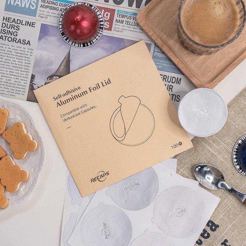 RECAPS Aluminum Foils Lids Seals to Reuse Coffee Pods Reusable Coffee Filter Refillable Filter Compatible with Nespresso VertuoLine Vertuo Only 100 Pcs 62mm