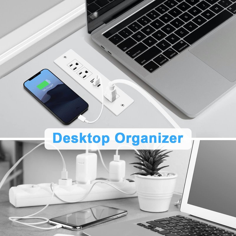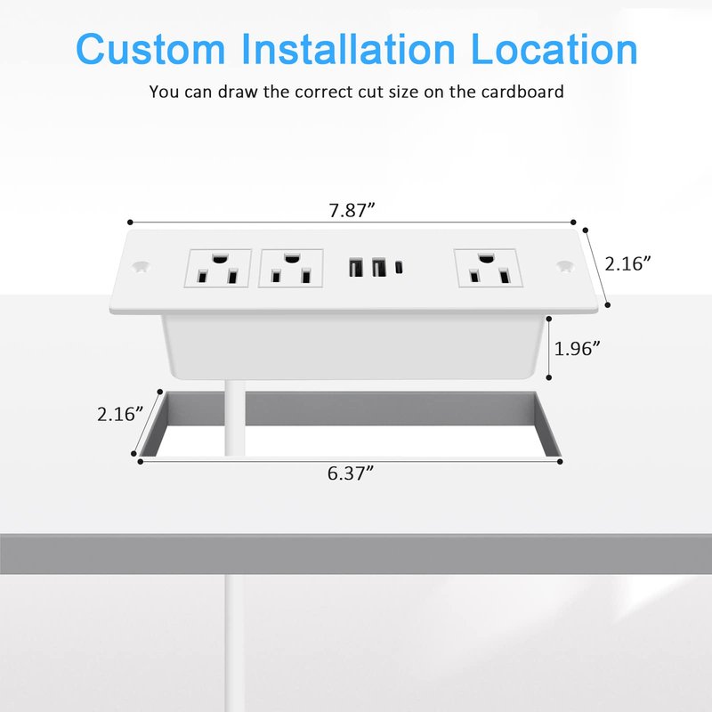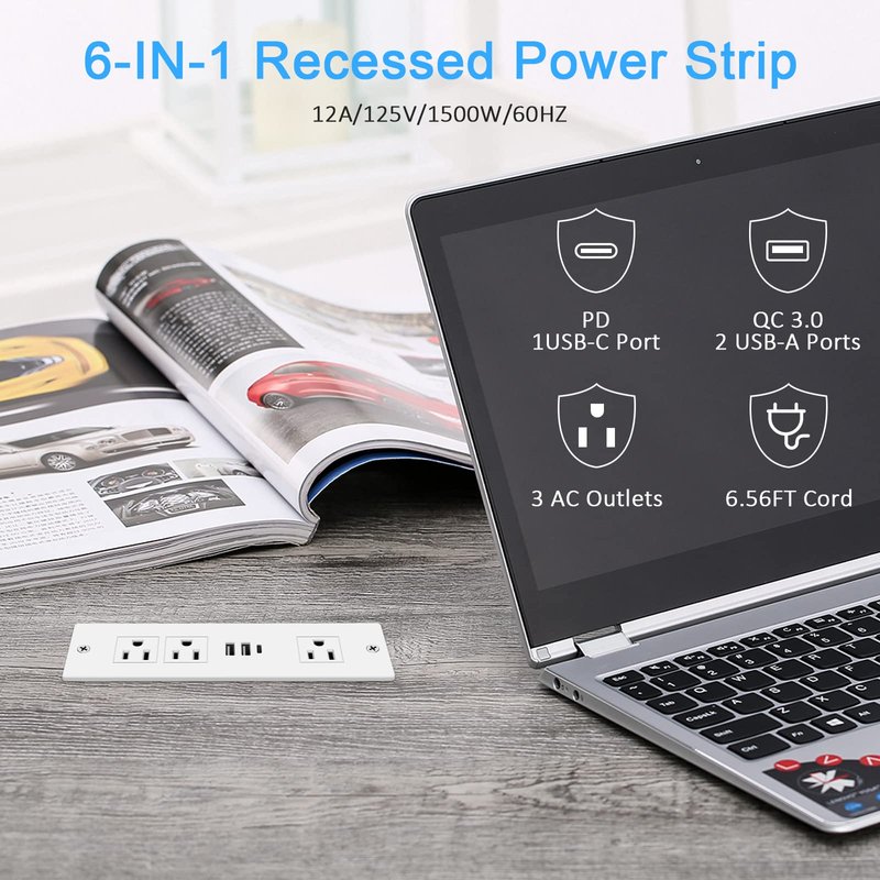 - Recessed Power Strip with USB Ports: Plug in 3 AC Outlets & 2 QC3.0 18W USB-A ports and PD20W USB-C port. Desk outlet is suitable perfectly for your conference table, standing desk,office,home etc. Rich configuration combination is great addition to table, furniture or drawer outlet.