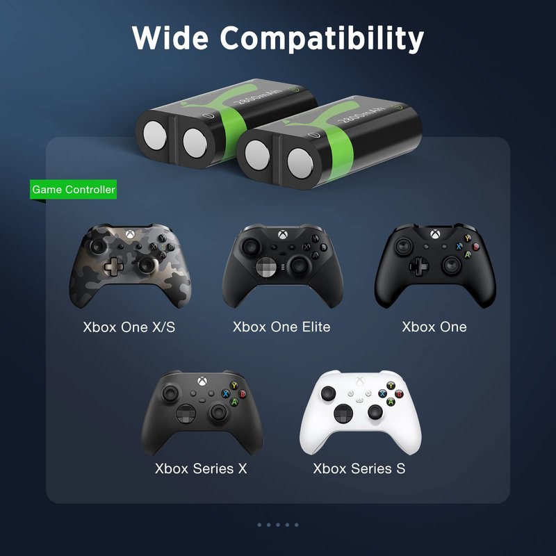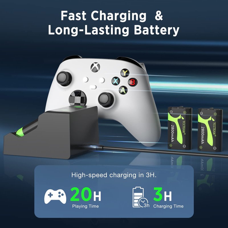- Wide Compatibility:The rechargeable battery pack is compatible with xbox controllers - xbox one/xbox 1 x/s/elite/xbox series x/s.Come with 2 pcs standard size batteries,it is easy to install the battery in the controller and fit with the original battery cover