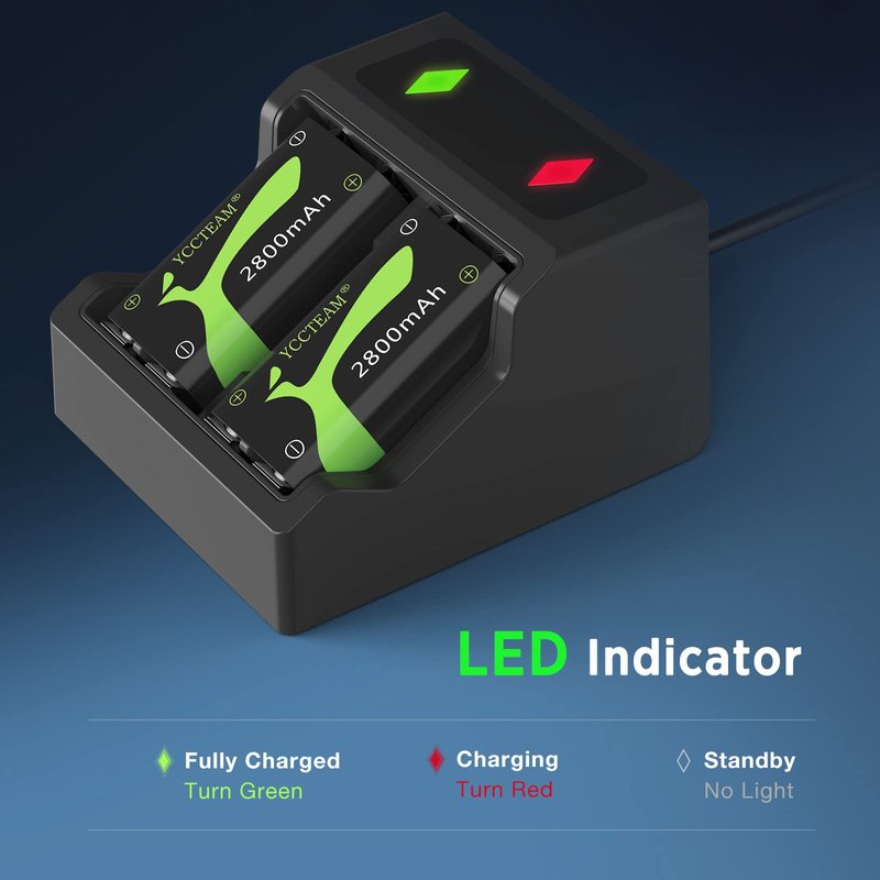- Clear Led Indicators:With 2 LED lights in the charging station,you can keep track of the charging status.When they are fully charged,the indicator light turns green.When batteries are charged,the indicator light truns red