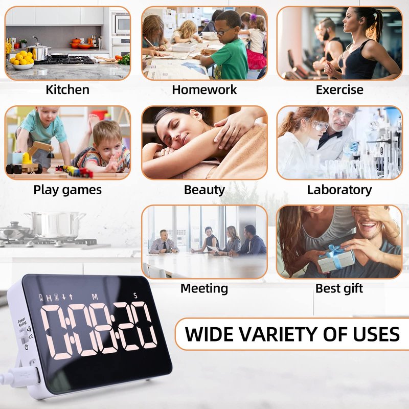 - ✅Rechargeable Counting Down/up Kitchen Timer: The large digital timer countdown from 9:59:59 to 0:00:00, or as a stopwatch from 0:00:00 to 9:59:59; The magnetic kitchen timers is rechargeable, timers come with the Typ-c charging cable. With this rechargeable environmentally friendly digital timer, you no longer have to worry about changing batteries frequently.