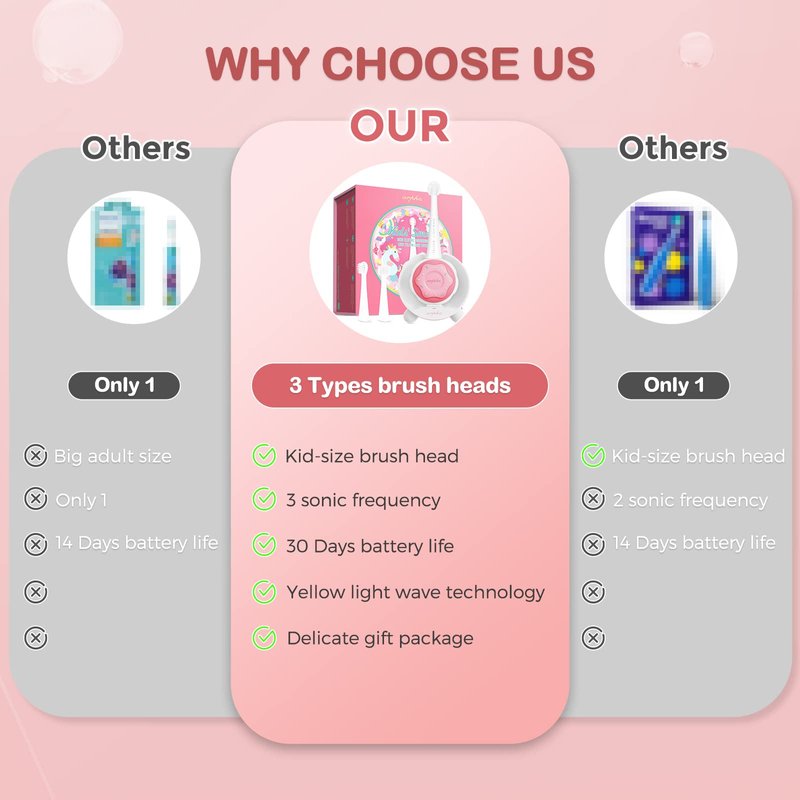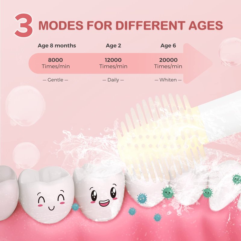 - EFFECTIVE TEETH CLEANING - This soft bristle toothbrush provides 3 cleaning modes for kids of various ages (relatively milder, less noisy). Backed by unique yellow light technology, it could soothe sensitivity and prevent tooth decay, thus enhancing oral health continuously.