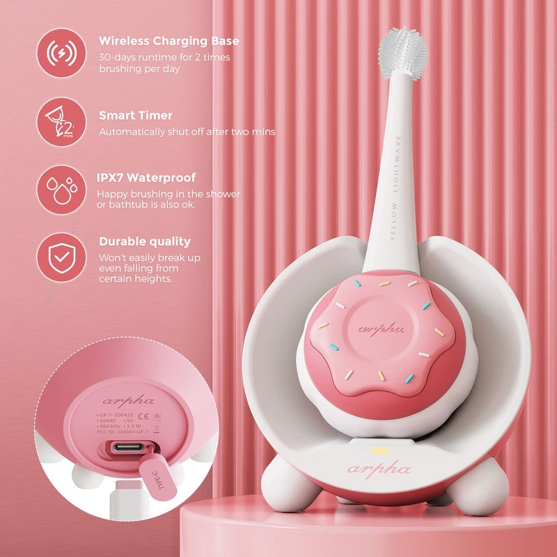 - ULTRA-LASTING BATTERY LIFE & WATERPROOF- Arpha electric toothbrush kids can provide 30-days brushing (2 times a day) once charged fully. Totally free of the hassle of replacing batteries and environment-friendly. IPX7 waterproof makes it easy to clean after use.