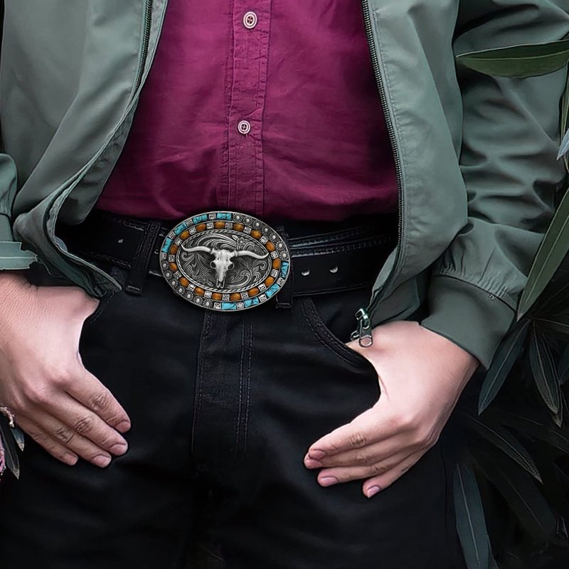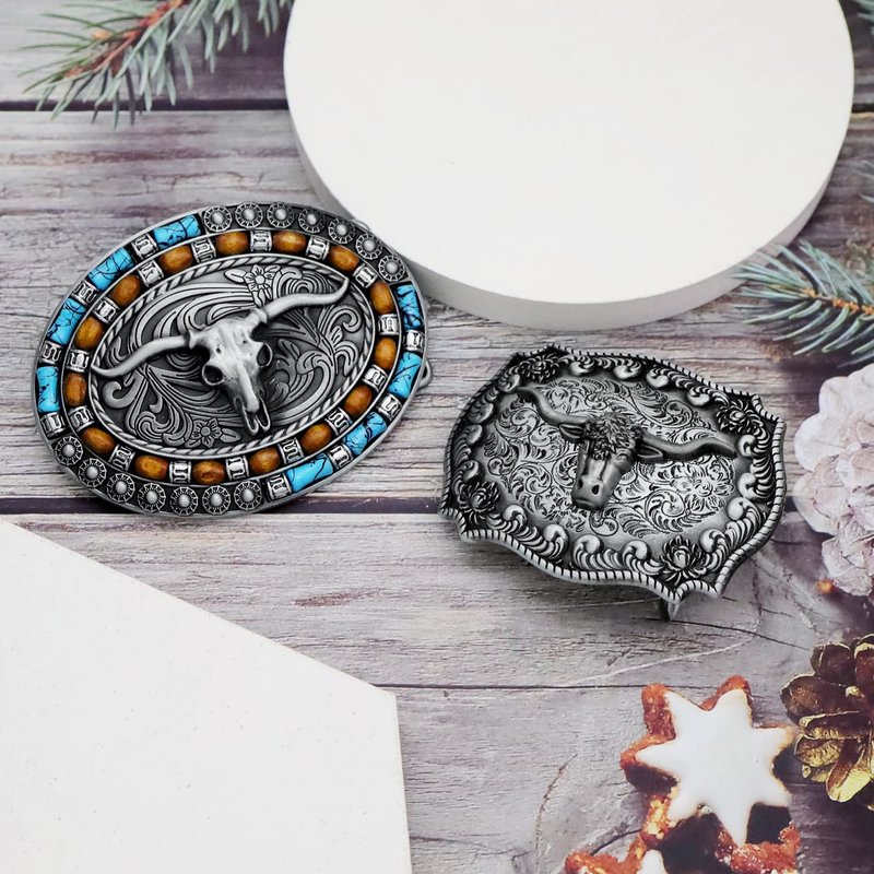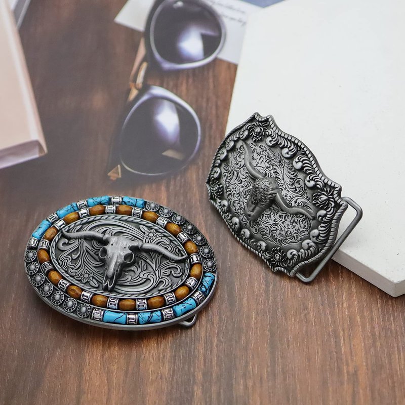 - Cowboy Belt Buckle:One order includes two different styles of mens bull head belt buckles, one oval with turquoise bead decor and one square with floral engraving decor, these native america belt buckles feature mainly a classic bull head,the eye-catching design makes it a great choice for any occasion. It will instantly upgrade your look and make you stand out from the crowd. Perfect for any cowboy or men looking to add a touch of the wild west to their outfit.