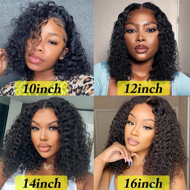 - Hair Material: Short Curly Water Wave Bob 4x4 Human Hair Lace Closure Wig,100% 9A Unprocessed Brazilian Virgin Hair,Natural and Healthy,Soft and Bouncy, No Shedding & Tangle Free