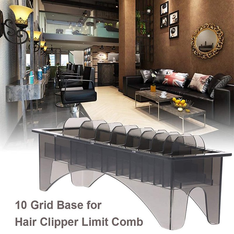 - VERSATILITY: This 10 grid electric hair clipper limit comb organizer isn't just for the professionals. Whether you're a seasoned stylist or just want to spruce up your home grooming kit, this is a perfect addition. Keep your workspace both professional and house proud.
