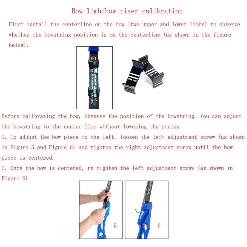 - Clip on design for adjusting recurve bow limbs alignment relative to the handle