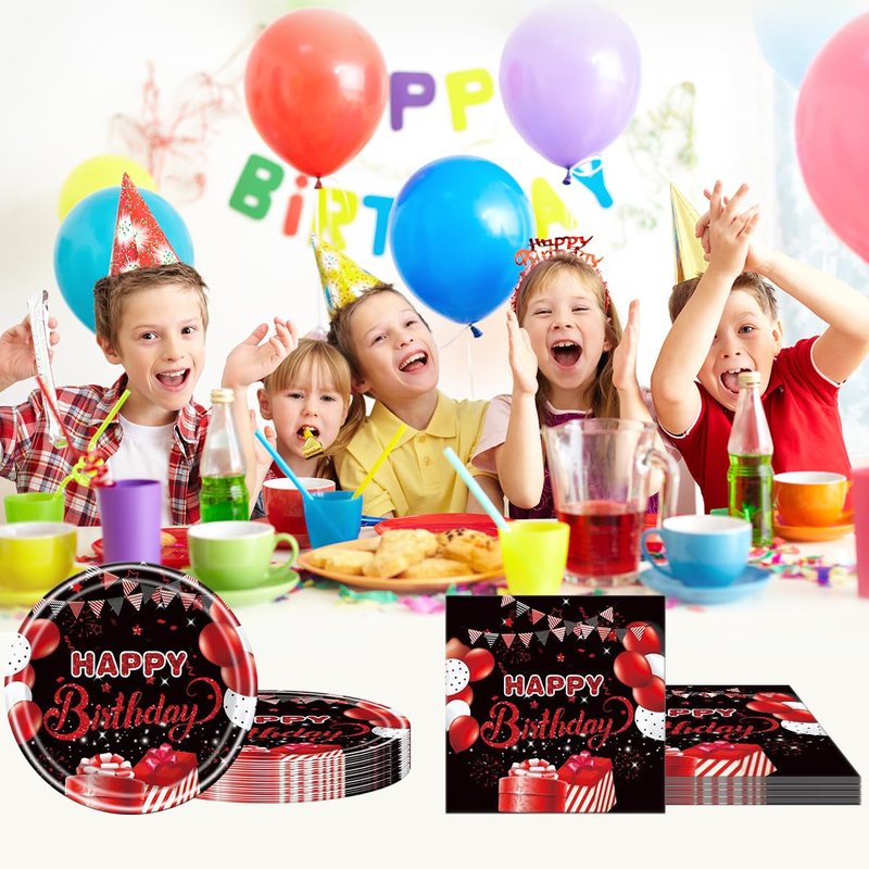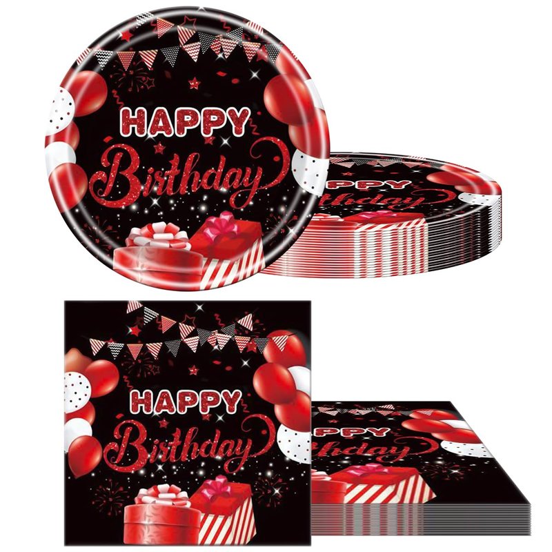 - 1.You will get: 20pcs red and black plates and 20pcs red and black napkins,For your party birthday.