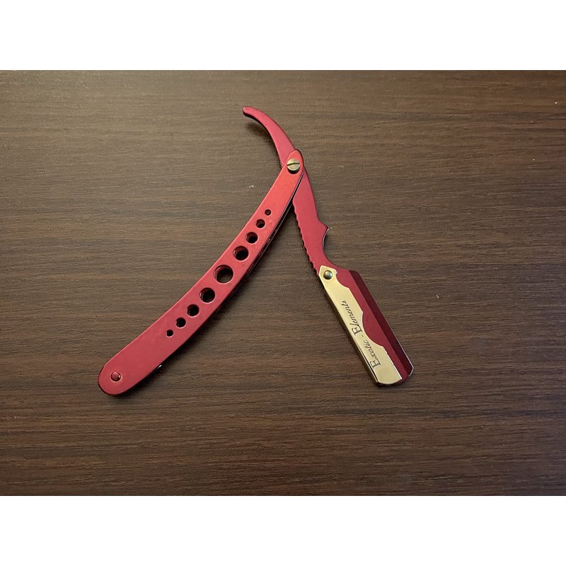 Red and Gold Easy to Use Men’s Barber Shaving Straight Edge Salon Level Grooming Razor Free Blade