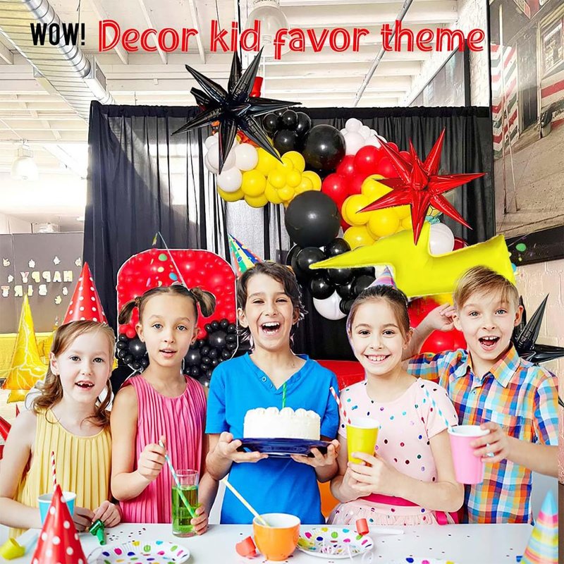 Red black yellow balloon garland kit 127pcs with Flash lightining Starburst mylar balloons for Cartoon superhero theme Race Car Party Theme birthday decorations