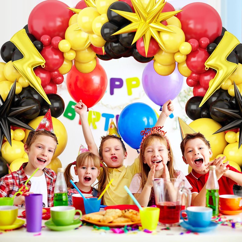 Red Black Yellow Balloons Arch Garland Kit, Cartoon Birthday Party Balloons with Flash Lightning Starburst Mylar Balloons for Cartoon Ball Theme Birthday Baby Shower Party Decor