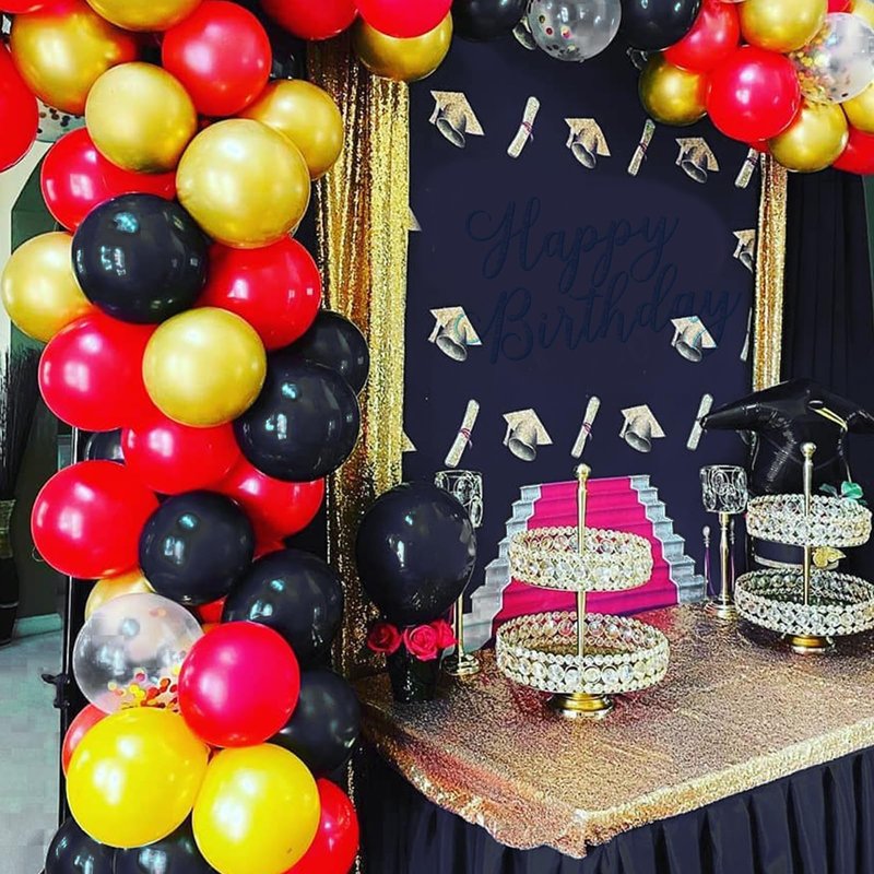 - Versatile Decorations: Unleash your creativity with our versatile balloon set. Mix and match the red, black, yellow and confetti balck gold balloons to create unique balloon arches, garlands, centerpieces, or balloon bouquets. The possibilities are endless, allowing you to design a party space that reflects your style and vision.