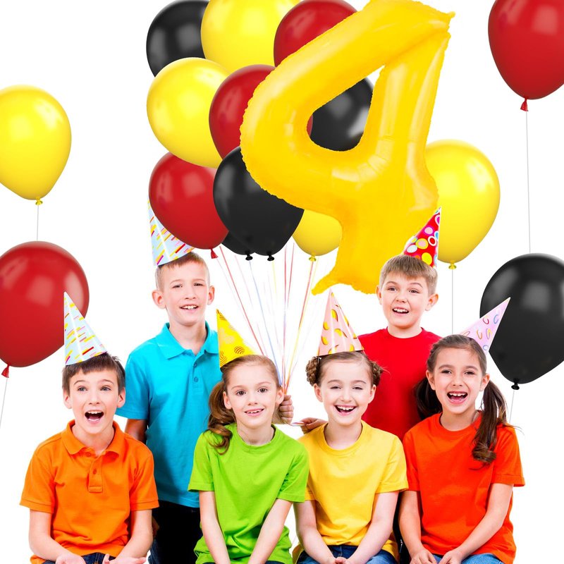 Red Black Yellow Number 4 Balloon Kit for Kids Party, 4 Balloon Cartoon Birthday Party Decorations, 4 Balloon Number for Kids Cartoon Birthday Party Decorations Supplies