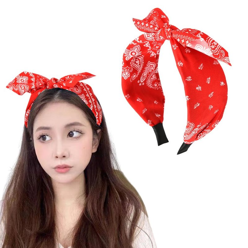 Red Bow Headband Paisley Bandana Headbands for Women Girls Bowknot Headband Bandana Hair Bands Boho Head Bands for Women's Hair Non Slip Knotted Bow Headband Rabbit Ear Headbands Bandana Hairband