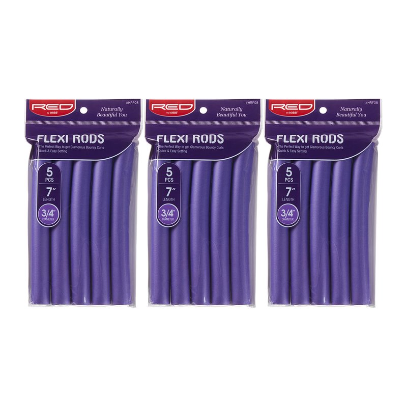 Red by Kiss Flexi Rods 7", 3/4" Diameter - Heatless Hair Curler for 90S Glamorous Bouncy Curls Beach Waves, No Slips, Sleep Styler (5 PCS x 3 PACKS)