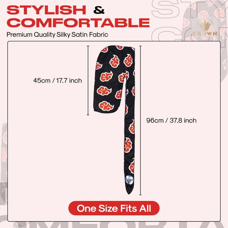 THIS DURAG WILL FIT YOUR HEAD NO PROBLEM. Refunds are acceptable. Shiny Silky and Soft Breathable and lightweight fabric Red Cloud Durag that is fan inspired from. This is a great gift for fans that admire the red cloud village organization. Ninja cap is perfect for laying down your hair and getting 360 waves. Our durag is made of silky satin fabric and is quadruple stitched to distribute pressure evenly throughout your waves and prevent forks in your wave pattern. Deluxe Wavy compression cap. The premium silky satin material effectively locks in moisture and will not absorb all of your wave grease or hair products, this allows your hair products to be as effective as possible for the ultimate 360, 540, and 720 Waves. Silk material provides an unmatched fit for excellent compression during the wolfing stage or to deepen your existing wave patterns. silky durags for man use super soft and skin-friendly materiel for men boys and women for wolfing. Size fits most - hair coverage, one size fit all, Perfect for 360,540, 720 Waves, Bikers, Hip-Hop lovers, chemo patient, hair loss, Muslim headscarf, sleep cap, or daily decoration. Headwear adopt the triple stitch seams which won't rip easily, washable and durable. Outside seaming design help you to create wavy shapes with natural curls smoothly. For the culture, this wave cap was inspired by urban lifestyle hip hop rap wavers who wolf their hair and get a wave cut fade haircut. as seen with rappers and artists. Outside Stitching / No line in middle of head / Universal size with long deluxe strap. Fashion accessories like bonnets, soft wave brush, hard boar bristle curve brush, pomade, wave cap a great bundle with this item.