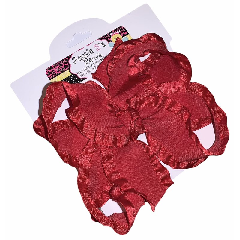 Red Double Ruffle Satin Ribbon Boutique Hair Bow with Tails 4"
