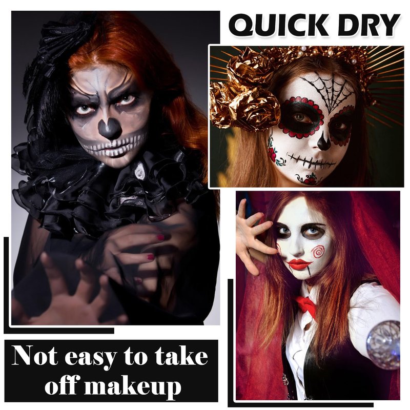 - ♦【Creative Painting】Unique creative painting makes you stand out, red face paint is the first choice for lovers of Halloween special effects makeup, zombies, goth white foundation makeup, etc. Both beginners and professional makeup artists can use it well.