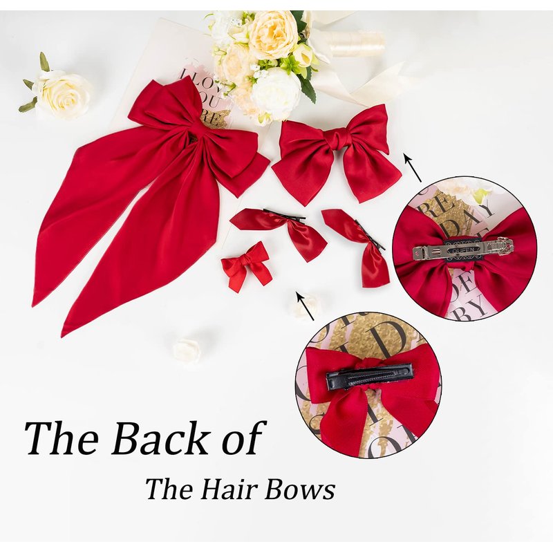 - ❤️❤️❤️【Package】You will get 5 silky hair bows. The color of the large bow clip is easy to match with your desired hairstyle and clothes.