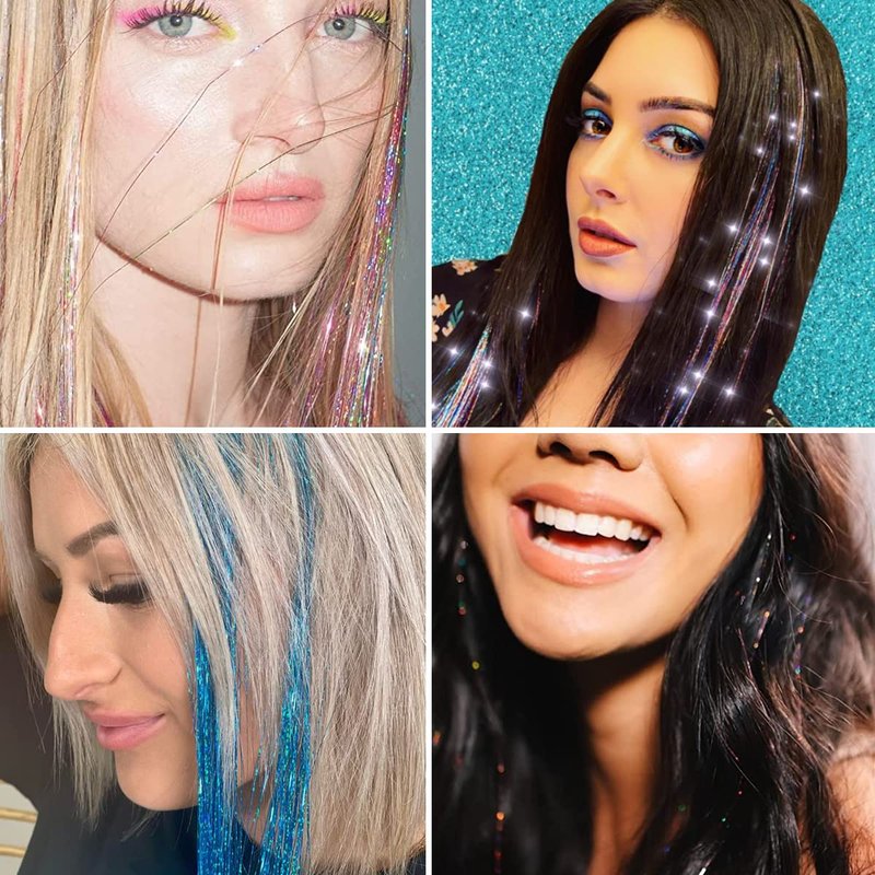 - Easy to Use: The 47 inches glitter hair extensions are long enough to be cut to the length you need. You can do it alone, or use the included tool, you can to easily fix the fairy tinsel on your beautiful hair, making you more shiny, beautiful, and eye-catching, to be a glitter goddess.