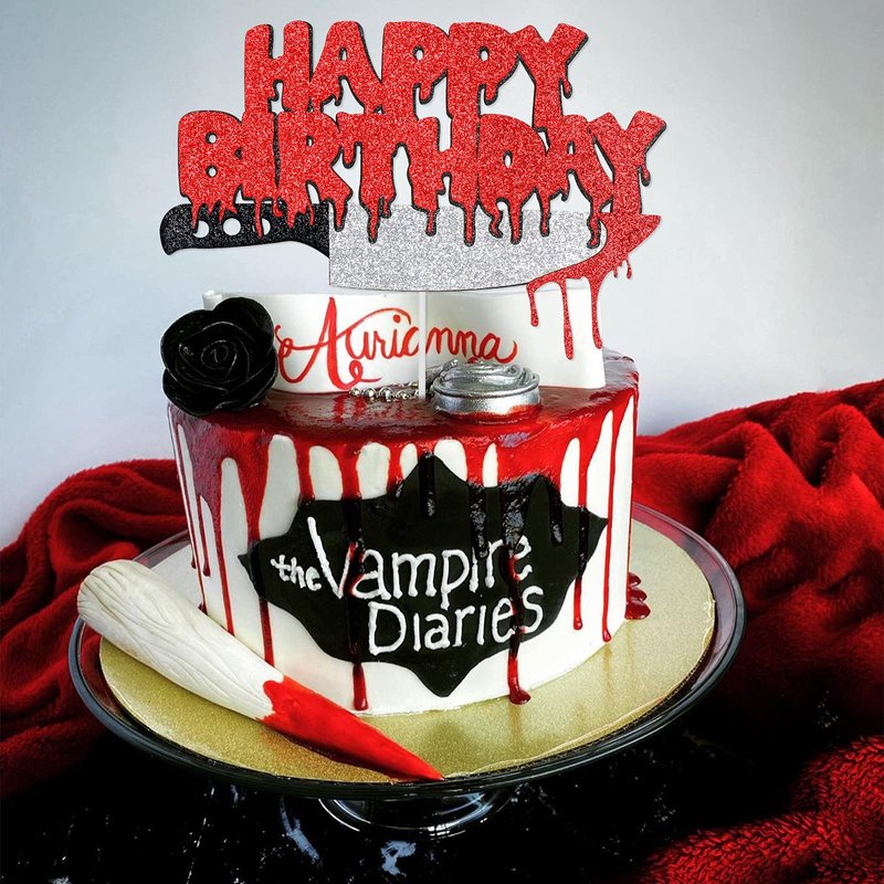 - Halloween Happy Birthday Party Decor: Special design and bright red color for Horror Movie Halloween Bloody Themed Birthday Celebration. On Top of Your Cheese Cake,Ice Cream Cake,Homemade Cake and More, eye-catching decorations to celebrate your horror movie birthday party.