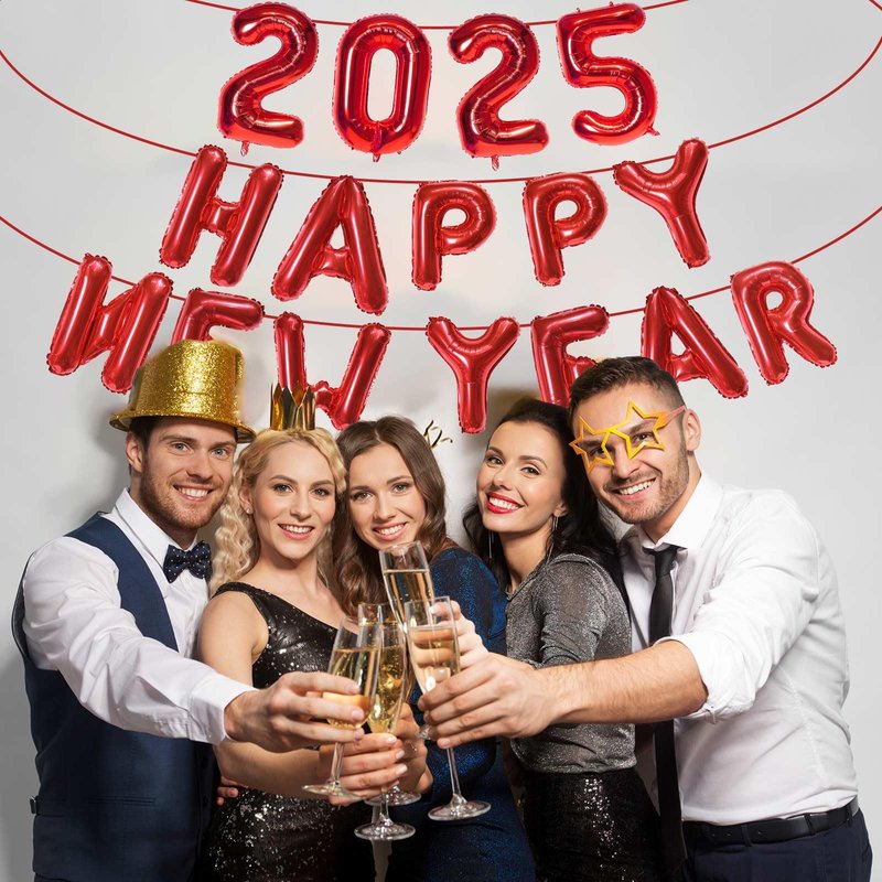 - Package Include: 16inch 'HAPPY NEW YEAR' foil letter balloons and 16inch '2025' foil number balloon. Each set of new year balloons comes with a straw to help you inflate each letter and a long ribbon.