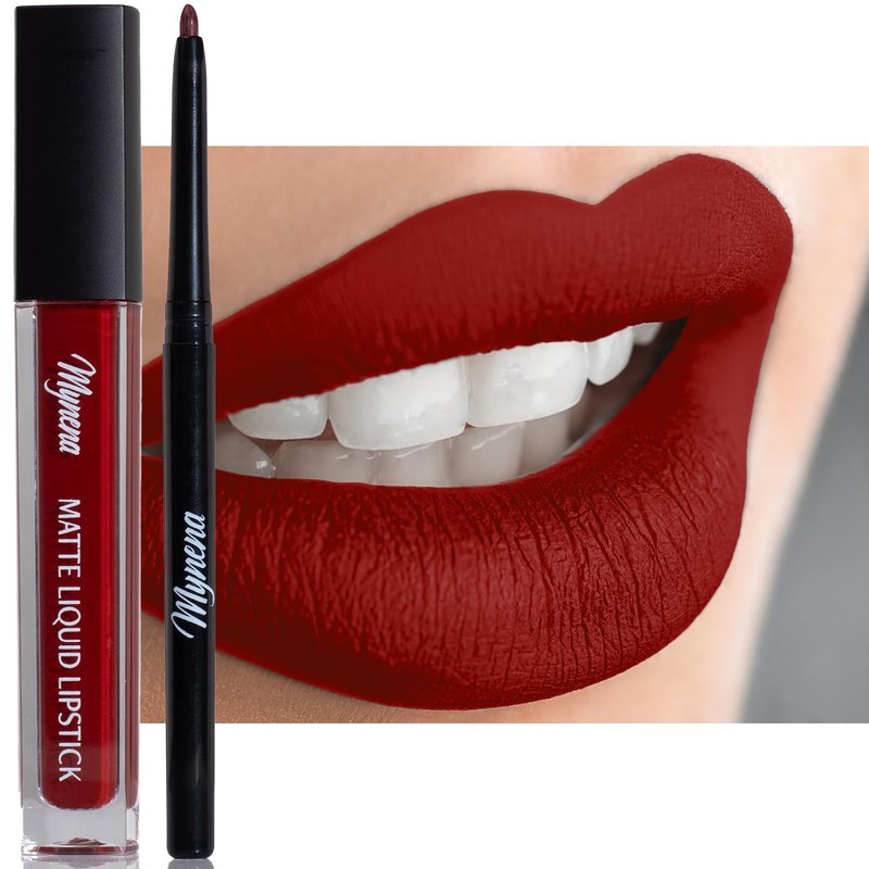 Sexy true red matte lip kit includes lip liner and long-lasting matte liquid lipstick, that is non-transferable, waterproof, kissproof, non-sticky, doesn’t crack or dry your lips, and stays long hours with minimal re-touch after eating. This Mynena beautiful lightweight matte liquid lipstick dries from a gloss to a bold, vivid matte. Collection of beautiful and trending shades that are transfer-resistant and smudge-proof. Highly pigmented for excellent coverage. It has a Mineral formula that does not pull on or dry out your lips while giving them a pop of color. Our long-wearing liquid lipsticks are vegan, paraben-free, talc-free, and cruelty-free with no sulfates or gluten. Designed and formulated in the USA and manufactured in a GMP-certified facility, our liquid matte lipsticks are safe to use on all skin types. It's the perfect gift for any occasion, mother, girl, daughter, sister, for her/his birthday, or just because. Makeup judgment-free zone; make up for all levels, ages, ethnicity, complexions, and gender.
