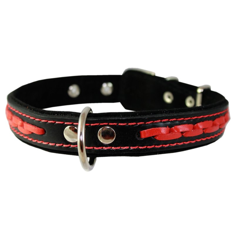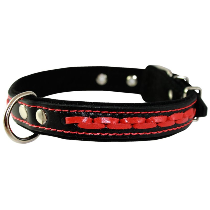 Red on Black Genuine Leather Braided Dog Collar 20"x1", Fits 14"-18" Neck