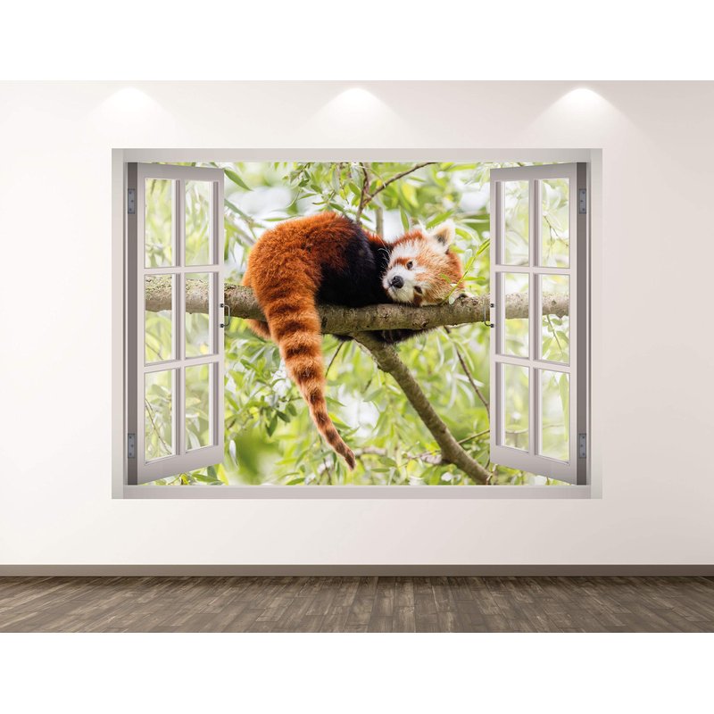 Red Panda Wall Decal Art Decor 3D Window Animal Sticker Mural Kids Room Custom Gift BL183 (30"W x 22"H)