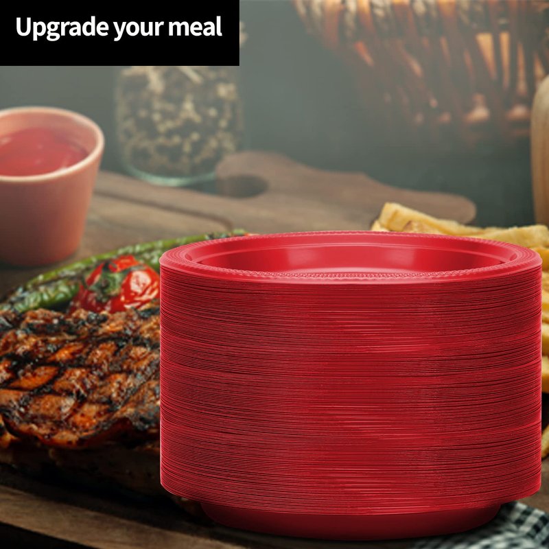 - INCLUDES: Each set offers 50 red 7-inch plates, suitable for dinner, dessert, or picnics, making it an ideal addition to your plastic dinnerware collection.